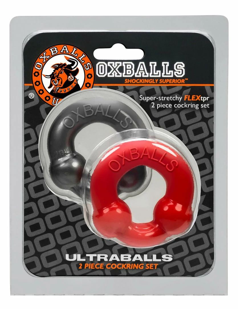 Ultraballs by Oxballs is a cockring that not only enhances your erection, it also pushes it up for visual pleasure. It is made of Flex TPR material that stretches and does not pinch. It is 2 inches long. This cockring stretches and sits around the the base of the penis. It hits pressure points on the underside of the shaft. This package gives you 2 rings for gifting away or stashing for later. It’s great for sex, masturbation, or wearing out to enhance your bulge.