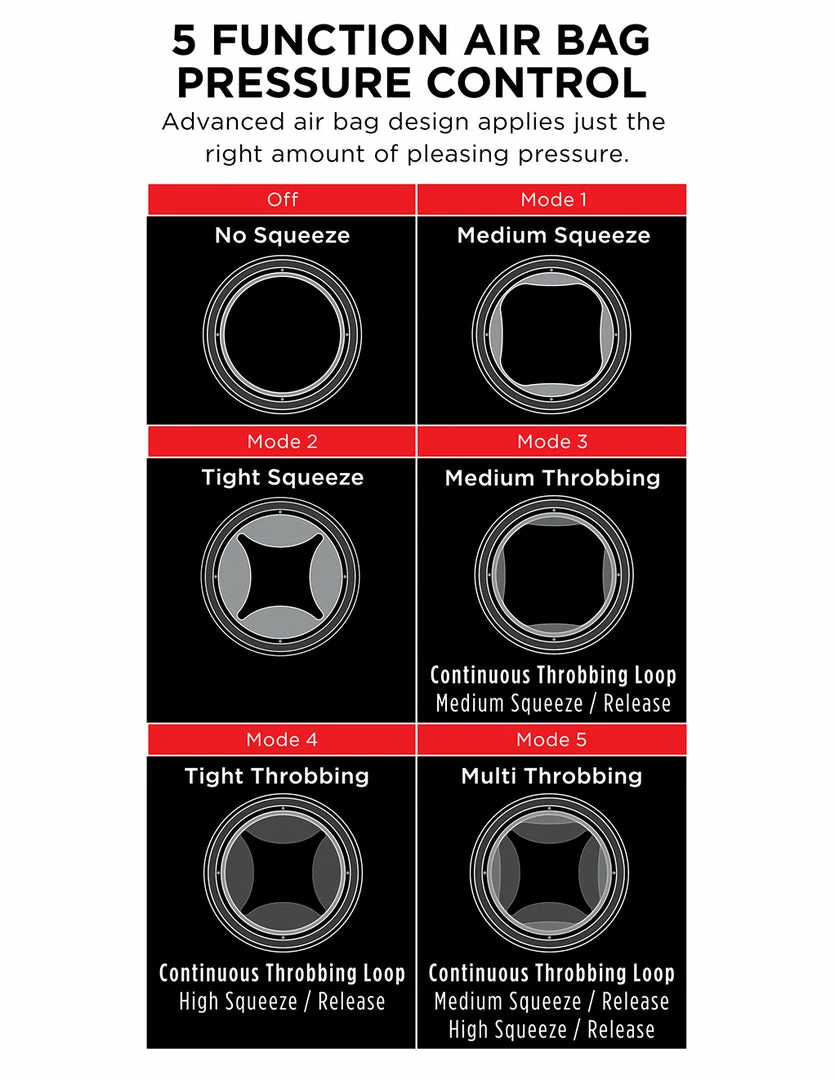 This toy has an innovative Air Bag technology built into it. Press the bottom button once to turn on this feature. Click through it to cycle through its pressure modes. Hold down the button to turn off this feature.