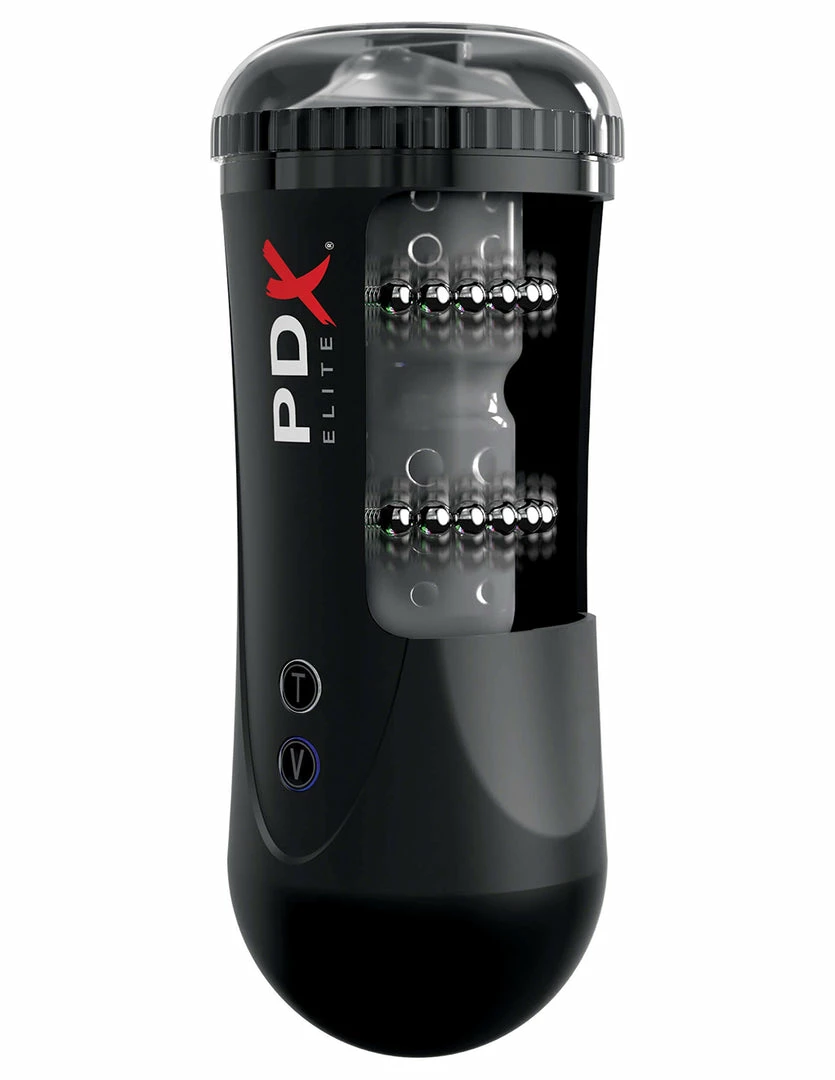 Moto Stroker by PDX Elite is 8.3 inches long, 3.5 inches wide, and has 5.5 inches of insertable length. Its case and cover are made of ABS plastic. The sleeve is soft and made of TPR material. It is detachable and has a mouth design. It is USB Rechargeable with up to 120 minutes of playtime. It has 2 buttons for independently controlling vibration and suction.