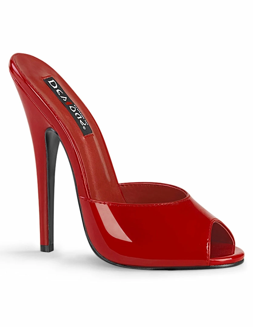 Bring a sexy and vintage flare to any look with the Pleaser Domina 101. This is a sexy peep toe muled high heel that is bound to make any outfit sexy and chic. The patent vegan leather captures the light and shines with every step. The peep toe design keeps the feet comfortable as it’s kept airy. Find your right size as these range between size 6-12. Style these mule heels to amplify your denim jeans, high waisted pants, and trousers. A pencil skirt, mini skirt or short dress line will also be great for these sexy heels. Let the Pleaser Domina 101 give a vintage flare to any sexy look.