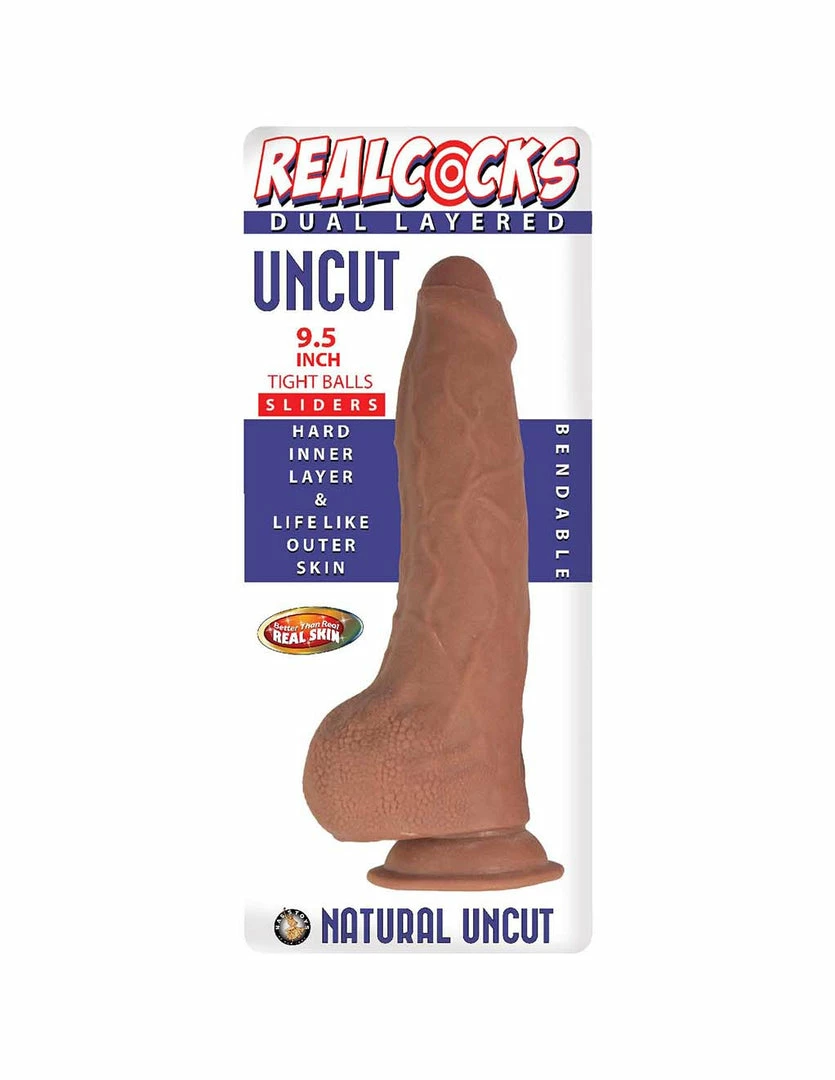 The RealCocks Uncut Slider 9.5″ Tight Balls will really rock your world. This hooded marvelous dong will give you quite a beyond realistic experience. It is intended to mimic an uncircumcised penis at a large size. The foreskin is moveable with every stroke. Built within this dong is a moveable spine that keeps it sturdy and erect yet still bendable. There is a suction cup at the base adding more versatility. It can be attached to a flat surface for mounting or for harness use for partner play. The outer texture is made out of soft and skin like TPE material that is washable and and can be paired with your favorite water based lubricant.