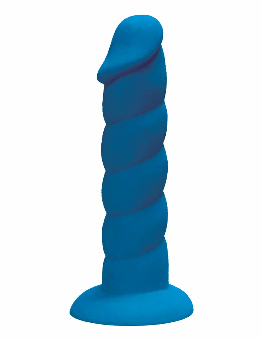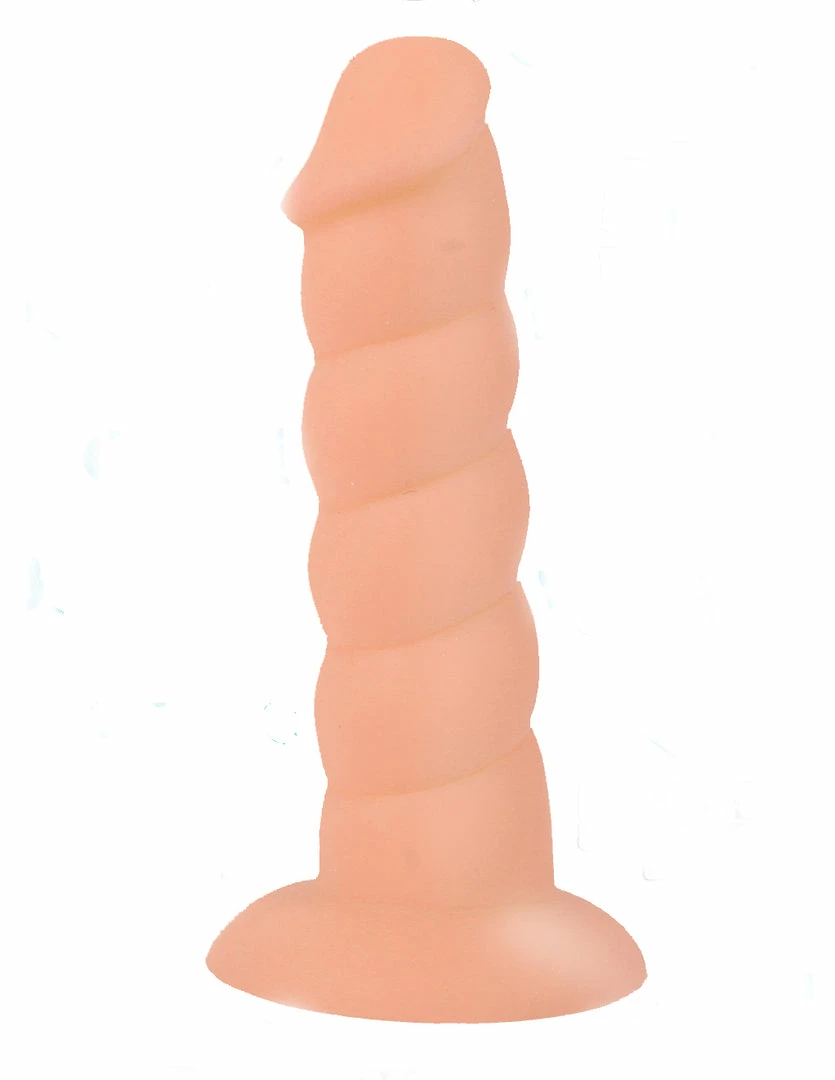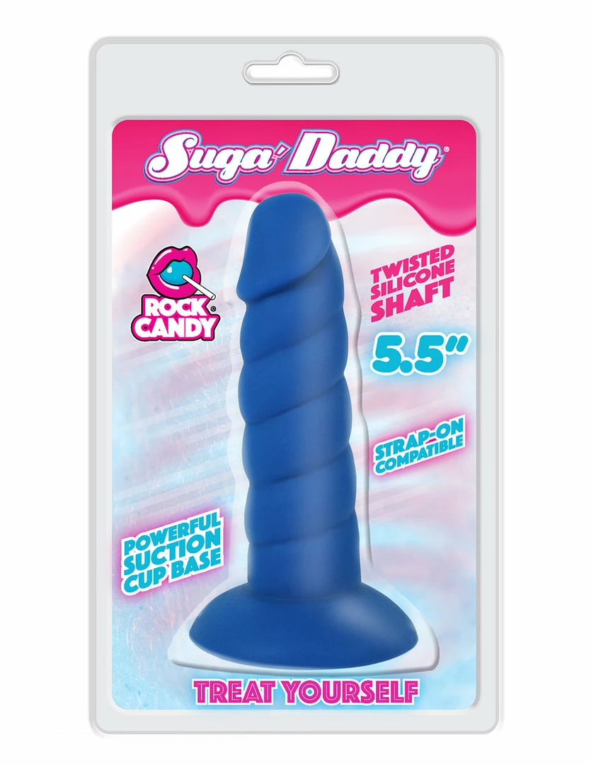 This Sugar Daddy dildo from Rock Candy is sure to please! This 5.5 inch dildo is designed with a realistic shaped head and ridges along the shaft for extra stimulation. It is equipped with a powerful suction cup which will adhere to any hard, flat surface for a wide variety of positions. The round base also makes this dildo perfect for use with your favorite O-ring harness.