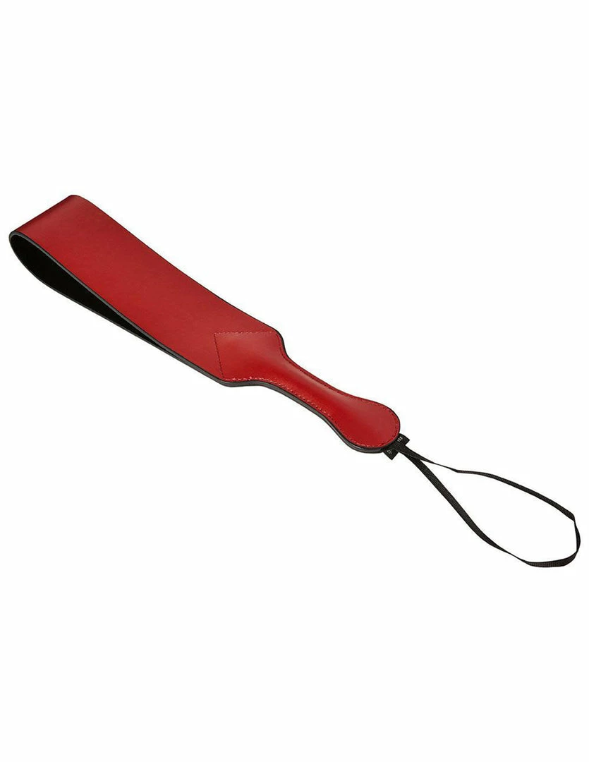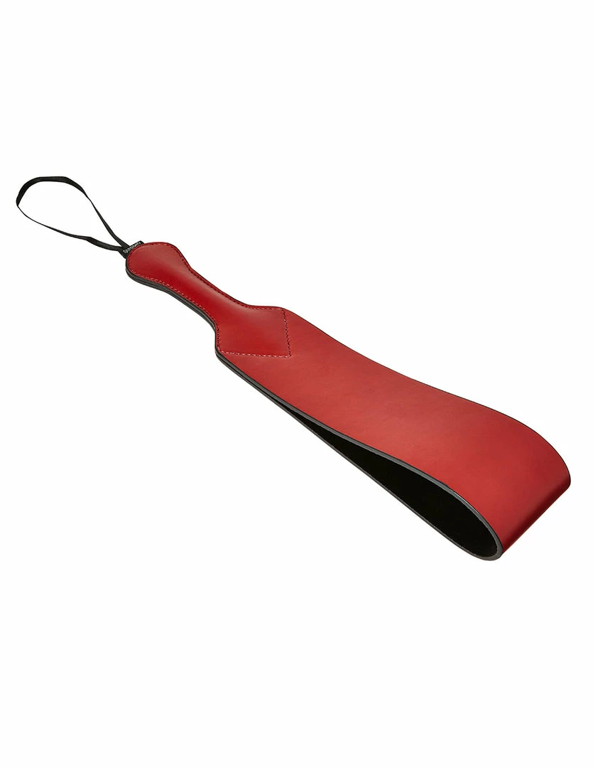 The Saffron Loop Paddle by Sportsheets delivers a loud and powerful smack. It has a loop by its handle for best grip. The paddle is wide and can cover a lot of surface. This paddle is made of quality vegan leather. Soothe your lover after each blow. Pair this paddle with a blind fold and restraints for the best experience.