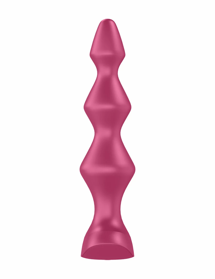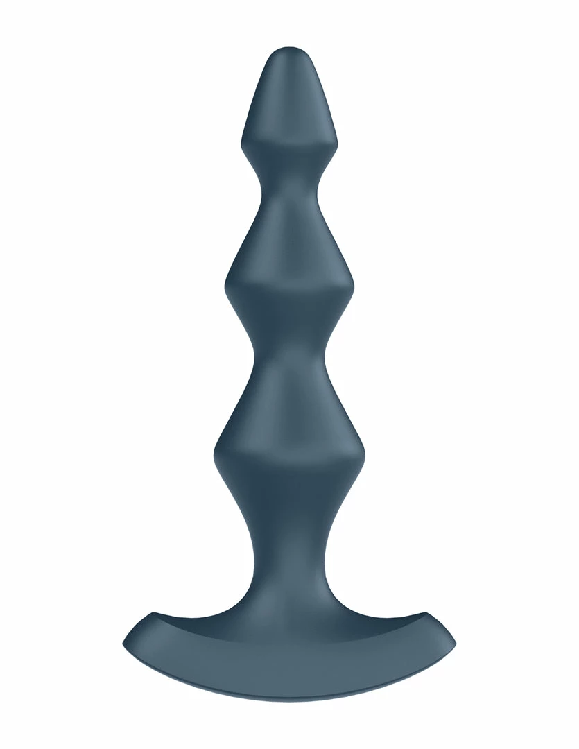 The Lolli Plug 1 is a vibrating anal plug with 3 ascending diamond shaped beads. It is whisper quiet with a unique rolling vibration. Lolli Plug 1 is coated with body-friendly silicone material. It is 5.4 inches long, 1.25 inches wide, and has 4 inches of insertable length. It is IPX7 waterproof and USB rechargeable.