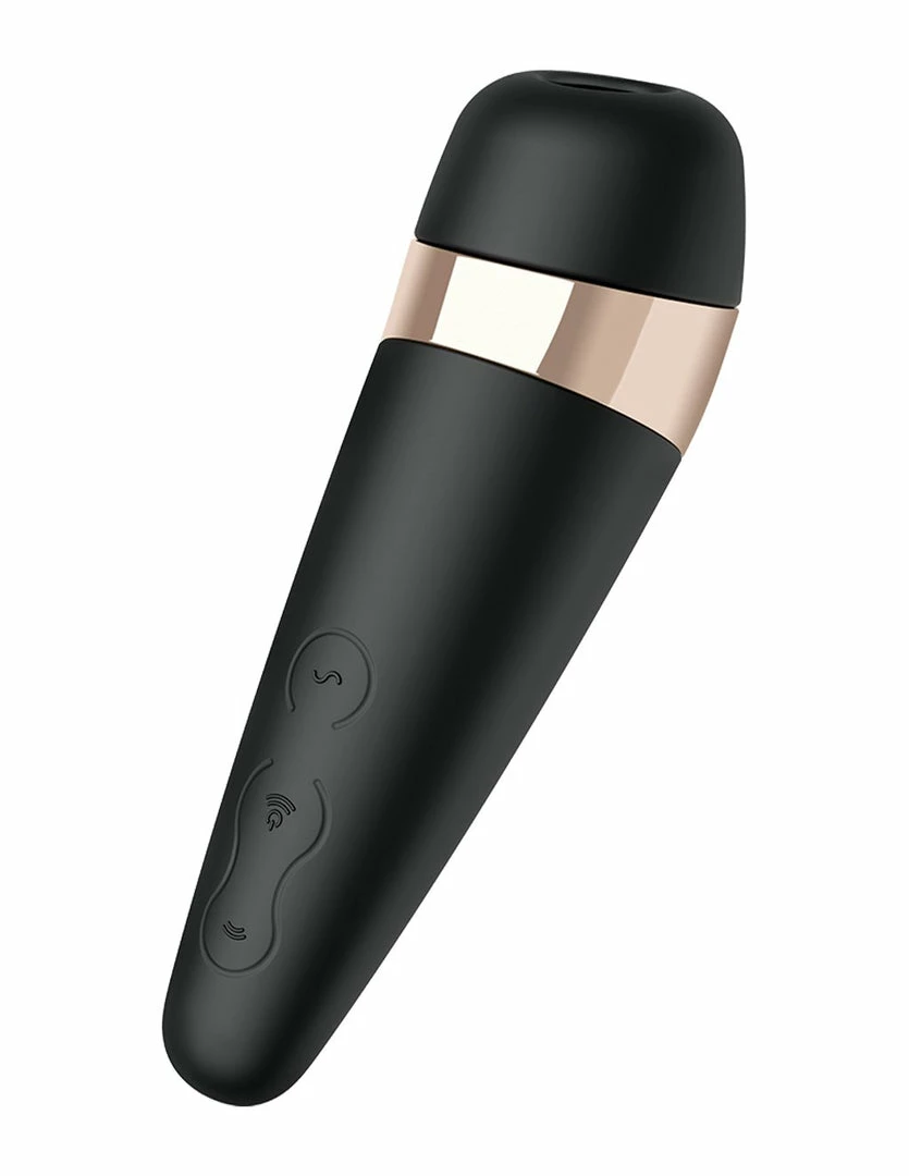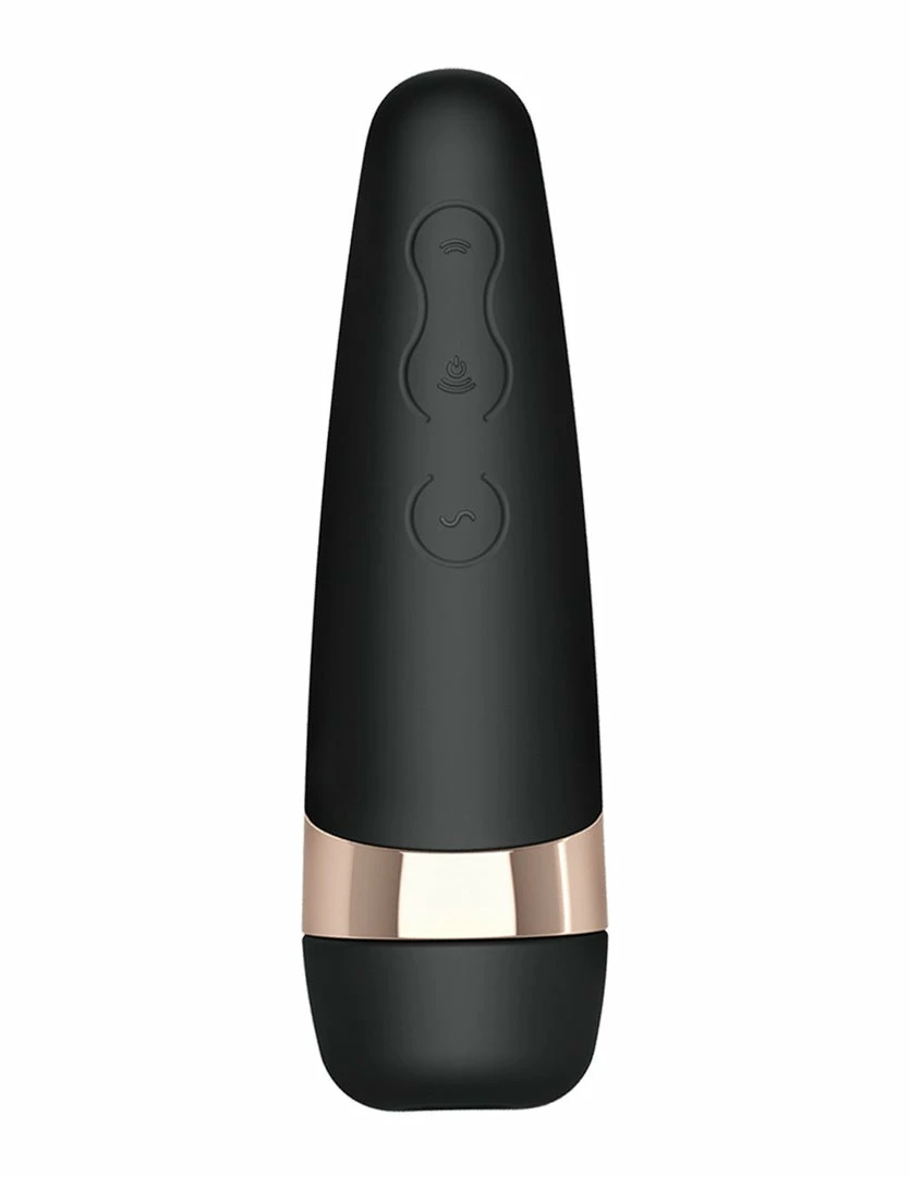 The Satisfyer Pro 3 Plus Clitoral Vibrator has a small mouth dedicated to the clitoris, it mimics a suckling sensation like oral sex. Its soft silicone head forms a seal around the clitoris to maximize pleasure. Two out of the 3 buttons control the intensities of the suction portion, it has up to 11 pressure waves. The 1 vibrating control button has 10 vibration patterns. It has a luxurious rose gold accent around the neck of the toy. This toy is Waterproof, USB Rechargeable, and easy to clean.