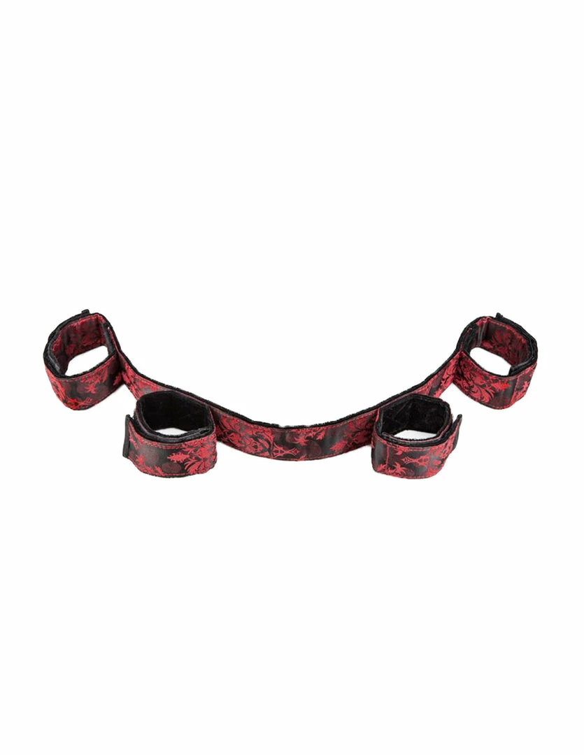 Scandal’s Bondage Bar Restraints bends its user over and displays all their best assets. It is a 20 inch spreader bar with 4 10.5 inch circumference cuff restraints. Each cuff is adjustable with Velcro fasteners. Its material is made out of high quality, red and black designer fabric. The inner lining of the cuffs are soft and plush. It is comfortable even as its user pulls against it. The bondage bar is collapsible and easy to store. It is convenient for travel.