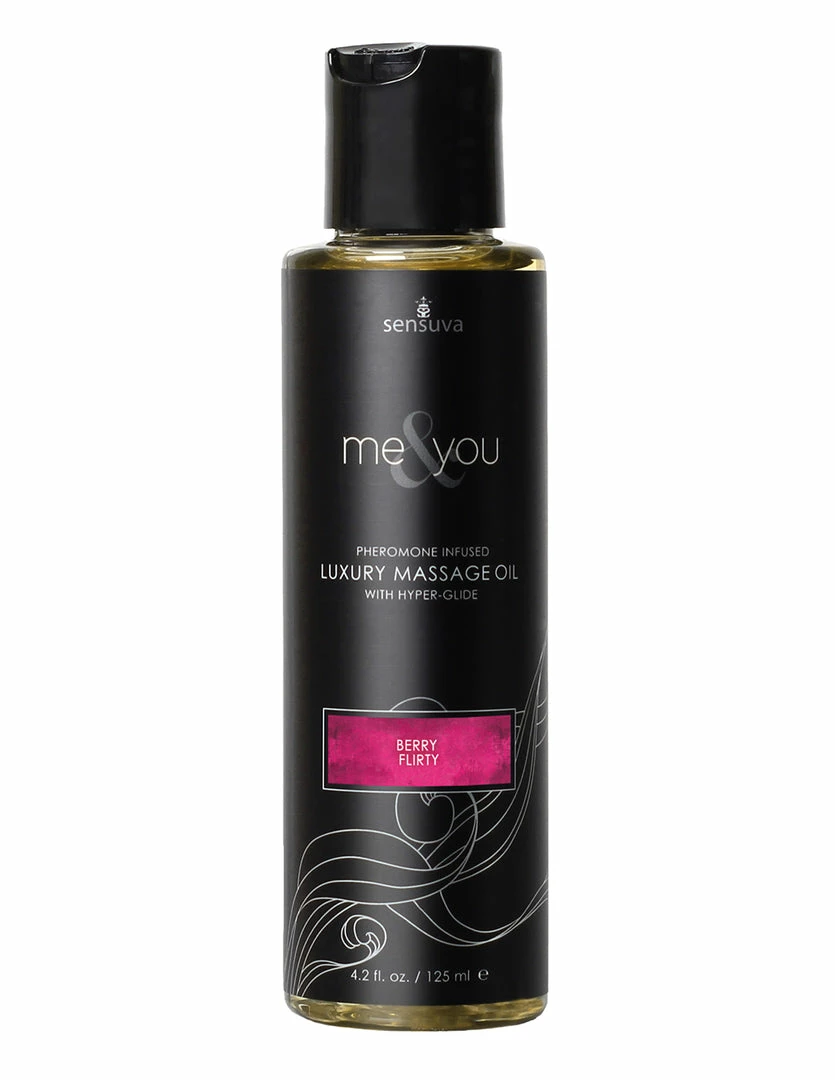 Me & You Massage oils by Sensuva will invigorate your senses as you relax. These are luxury oils infused with Pheromones, Vitamin E, and natural Essential Oil blends. Citrus will wake you up,. Scents of vanilla and sweet pea will calm you. Plumeria, fig, and coconut will tickle your senses and take you on a tropical retreat. This blend of natural oils will make your skin soft. As the oils heat up on your skin, pheromones will trigger your partner’s and your sexual urges. A massage between lovers is a very intimate moment. Heat things up in the bedroom with Sensuva Me & You Massage Oil.