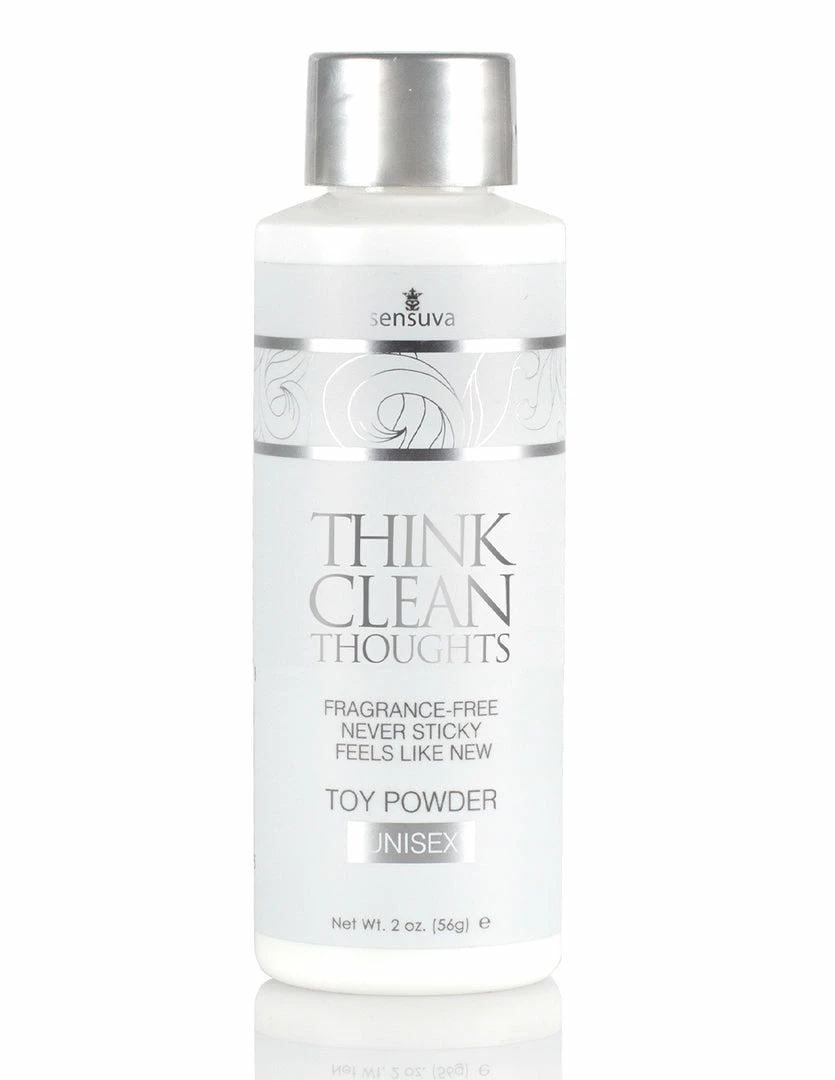 Keep your personal toys clean and refreshed with Sensuva’s Think Clean Thoughts Toy Powder. This powder absorbs any excess moisture, keeping bacteria from growing in moist areas. Wash your toy, dry it off, and rub a thin amount of toy powder on it. Doing this prior to storing your intimate products keeps it from getting oily or sticky between uses.