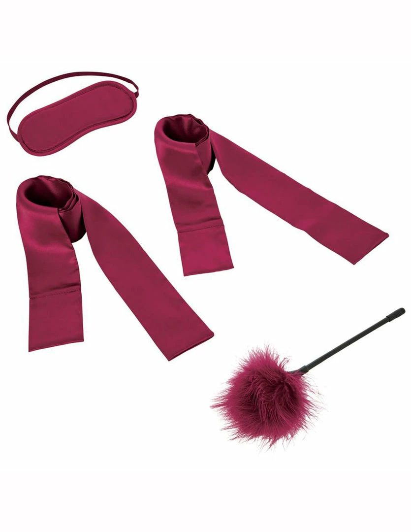 The Enchanted Starter Kit by Sex & Mischief is the perfect kit to explore sensory play. It comes with a satin blindfold, feather tickler, and satin tethers. Blindfolding your partner can enhance all their other senses like touch, smell, and hearing. Tie the satin tethers to a bedpost and tie your lover down. These tethers can also be used on any furniture in the home, such as a sofa or chair. Use the feather tickler to arouse them. Experience total blindness and heightened sensations together.