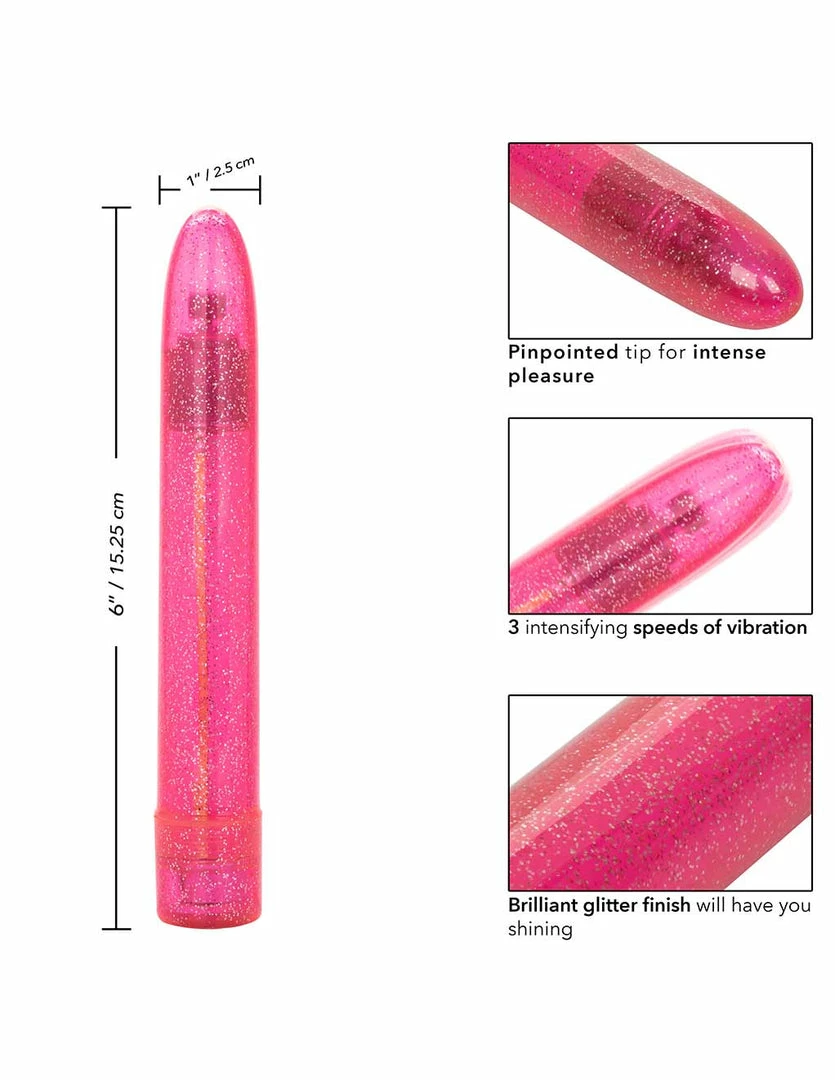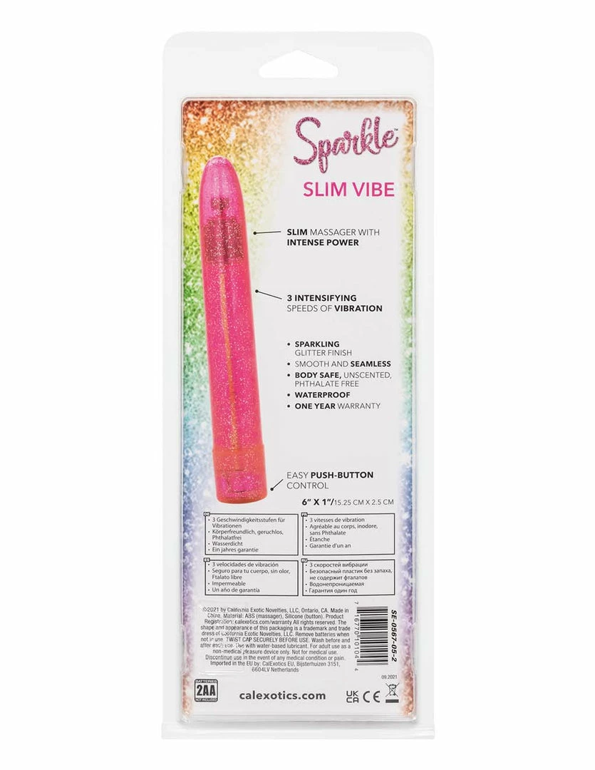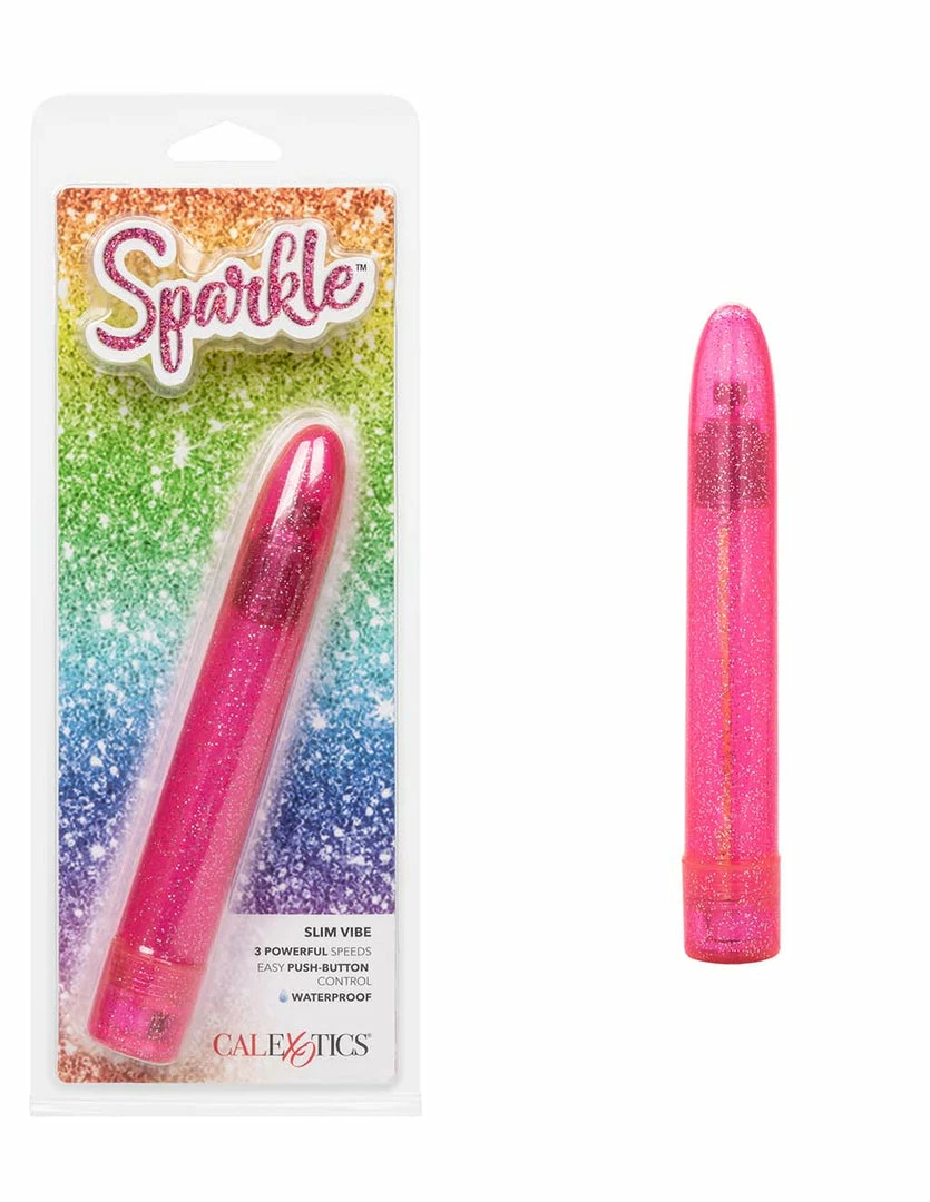 Let your love life shine bright with the Sparkle Slim Vibe. This is a sleek, slim, and powerful massager that is sure to dazzle your night wherever you go. This high powered vibrator is built with 3 different speeds and functions. It is made with a durable and comfortable ABS plastic which is also waterproof. The slim body will stimulate your target areas with ease. The body measures with 6 inches of length and a sleek 1 inch width. This simple to use toy is gets assembled with 2 AA batteries as the chamber is found at the bottom. Dazzle your downstairs with the sleek and powerful Sparkle Slim Vibe.