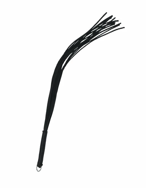 Enjoy the delicious feeling of leather against your skin with this 20 inch Leather Thong Whip by Spartacus. It has a leather bound handle with a d-ring to hook it in place for storage. These long leather strands deliver a heavy to sharp sting. This flogger is perfect for beginner to advanced users. The smell of genuine leather makes this whip luxurious. Whip it across your bent over submissive’s buttocks or thighs for stings of pain and pleasure.