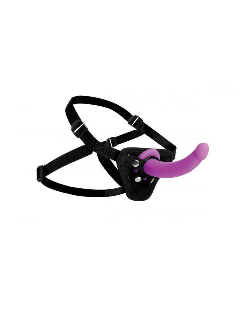 Perfect for pegging or vaginal sex, this strap-on set has everything you need for a comfortable and passionate penetration! Equipped with a sexy, adjustable harness and a silky, non-threatening dildo, you and your partner will be able to delve into new pleasure territory. Harness adjusts up to 44 inches around the waist and 28 inches around each thigh.