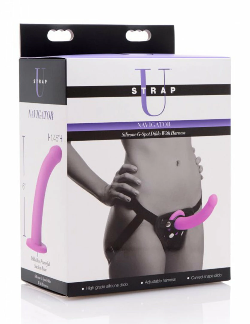 The harness accommodates many sizes, wrapping seductively around the butt and thighs. A small pocket sits within the inner panel for adding a vibrating bullet if you choose. The dildo is curved for prostate or G-spot stimulation, with a tapered shaft that gradually increases in diameter. This, coupled with the smooth material, will allow for an easy insertion at your own pace.