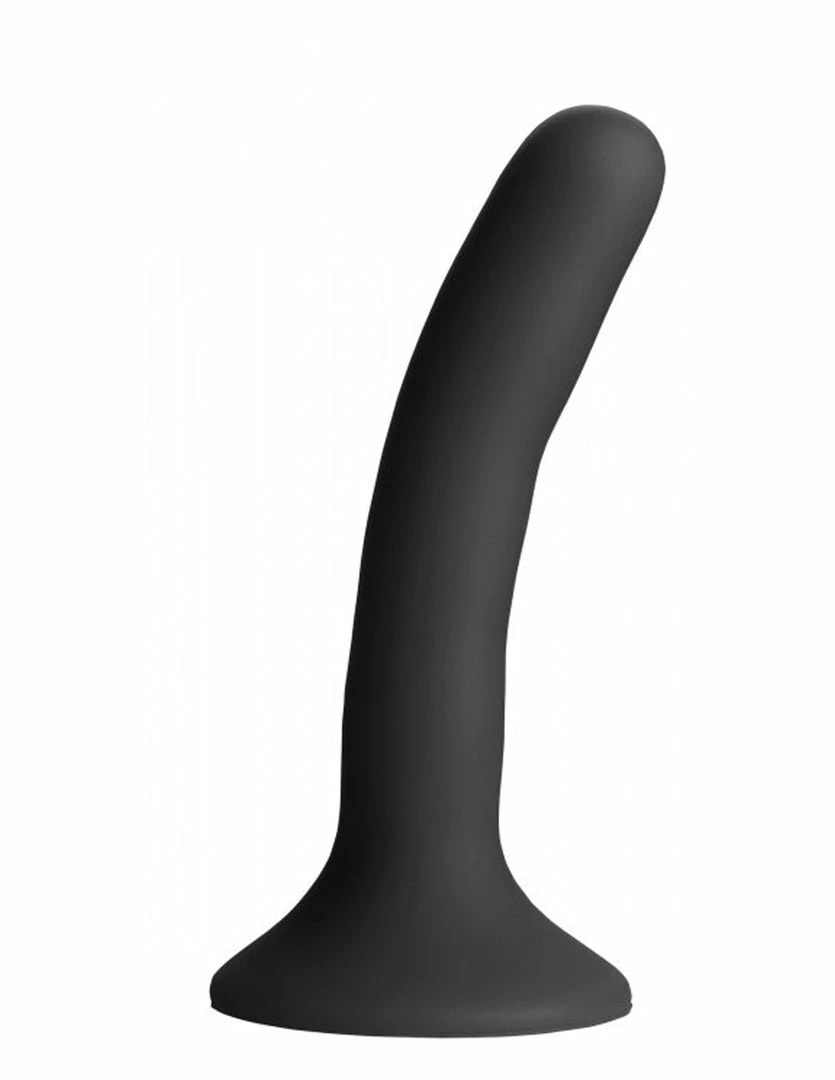 The dildo is slightly curved to stimulate the prostate or G-spot. Its tip is rounded for easy insertion. It is flexible for thrusting ease. The harness has a small pocket inside the front panel for a bullet vibrator* to add more stimulation. Generously lube it up with water based lubricant.