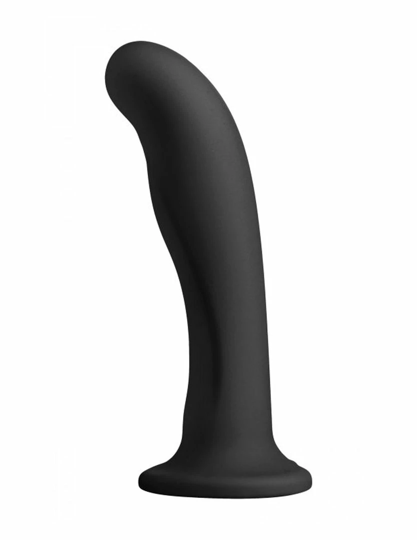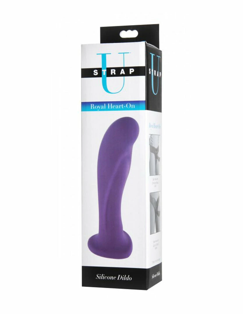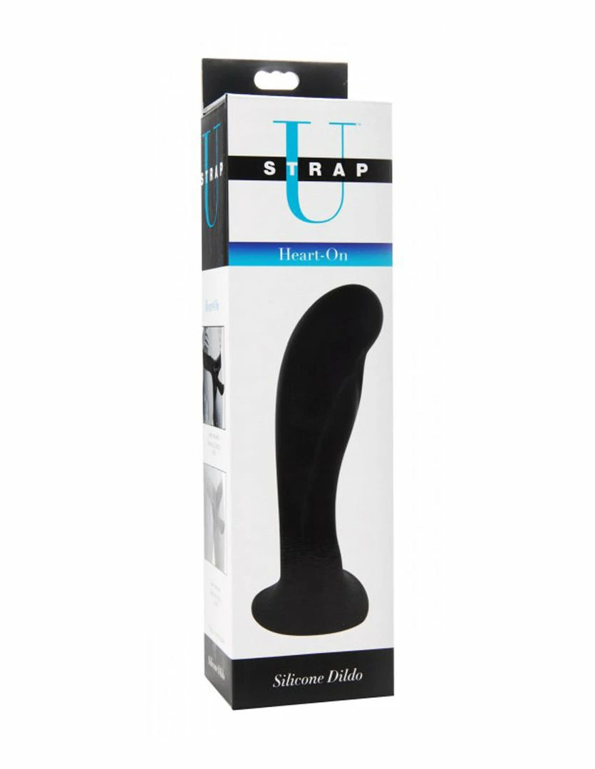 The Heart-On dildo from Strap U is a curved bulbous dildo. With a heart shaped base, this 6 inch dildo is compatible with most standard strap on harnesses. It is made from a body-safe silicone and has a firm yet flexible feel. Not only is there a curve at the tip, there is also a slight increase in girth for a more intense G-spot stimulation. That also makes this dildo great for prostate play! Thanks to the non-porous silicone, this toy can be easily cleaned.