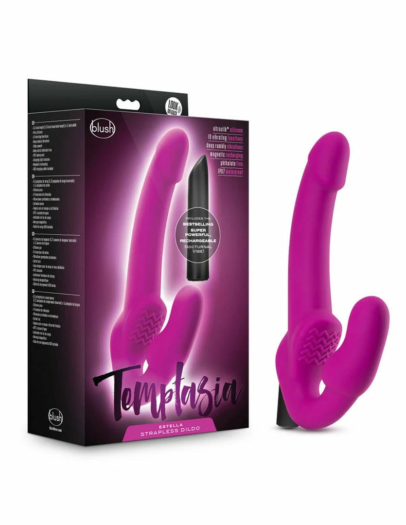 As you begin to discover the magic within Estella, insert the bulb into the wearer. Use a water based lubricant for a nice and pleasurable slip. This can be worn with underwear if preferred. Try to find the perfect vibrating pattern as the wearer is thrusting into the receiving partner. The partner will begin to feel the sensation that the shaft, the vibrating function, clitoral massaging ridges, and the overall motion that the Temptasia Estella Strapless Dildo can bring!
