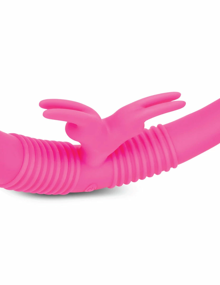The Together Toy shares more than just your experience, you can experience each other’s arousal with the Echo Function. The Together Toy is a double-ended dual stimulating vibrator. It is made of silicone material. It is 14 inches long, 1.5 inches wide, and has 6.5 inches of insertable length. Together Toy is USB rechargeable. It has 3 speeds to play with. The head is curved for g-spot stimulation. The rabbit ears tickle and stimulate the clitoris. The middle base is adjustable to fit your favorite positions.