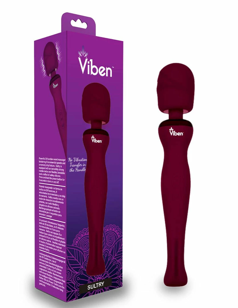 Viben Toys brings you a new and powerful vibrating wand massager where every session feels satisfying and sensational. This powerful vibrator is made with a a rumbling motor that operates with 8 variable speeds and 20 different vibration patterns. There is a built in memory chip that knows exactly what function got you off the last time of use. The silky and smooth silicone head and body is water proof. The total length of the Sultry Wand is 12.68 inches with a width of 2.13 inches. Don’t let the fun ever end as there is a USB charging cable included in your kit.