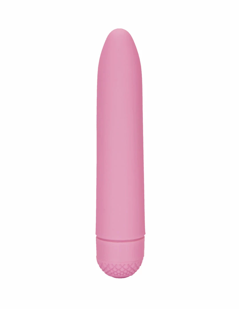 The First Time Mini Vibe is a 4.5 inch battery operated vibrator. This vibrator requires 1 AA battery. It is 1 inch wide and made of velvety smooth ABS plastic. It is perfect for beginners. It has a tapered tip for pin point stimulation. This vibrator has various speeds to play with. It has a twist dial control. This vibrator can be used externally on the most sensitive areas: nipples, clitoris, and labia. It can also be inserted vaginally. This vibrator can also be used to stimulate the head of the penis, shaft, and scrotum. Use it solo or with a partner. Use water based lubricant for easy insertion and use.