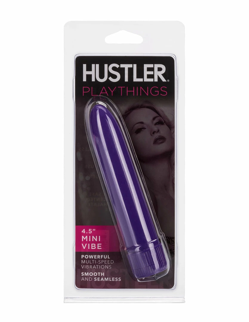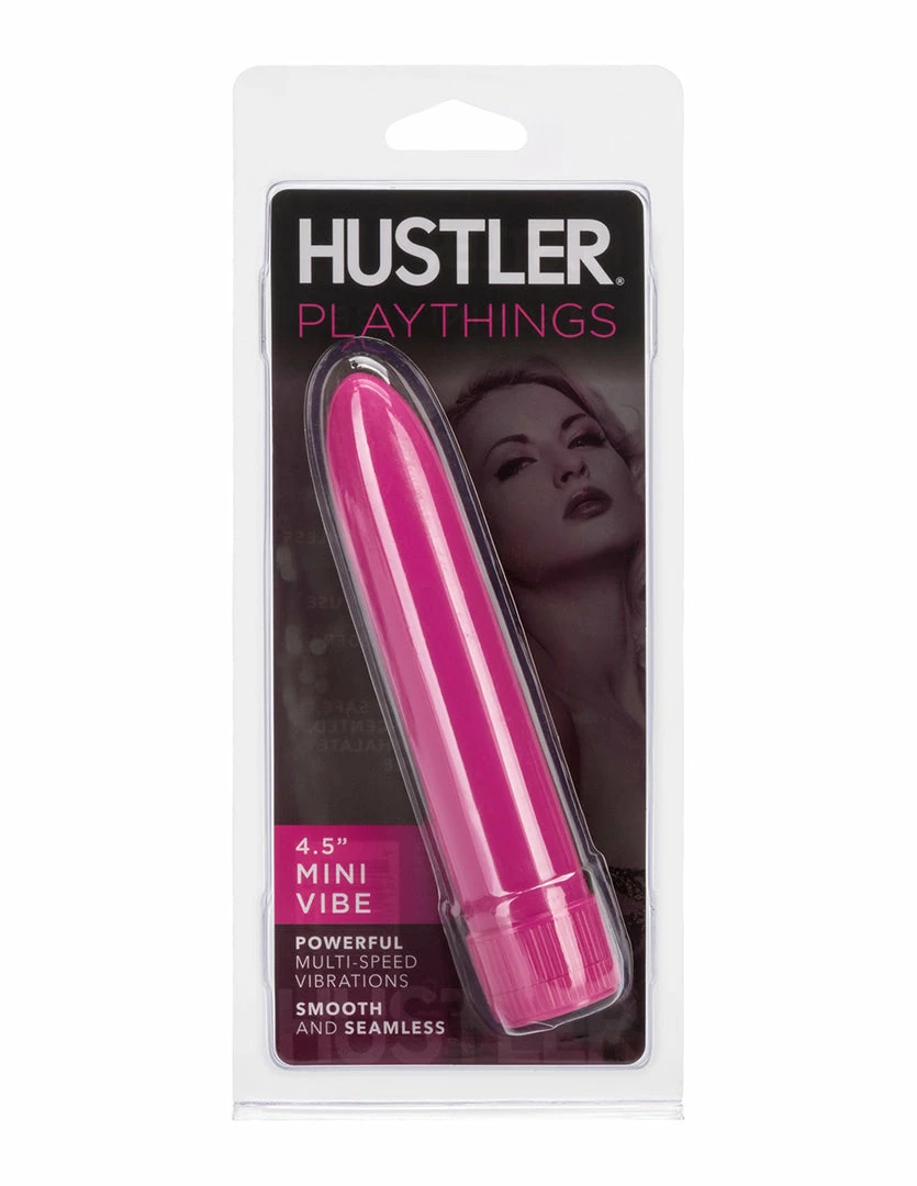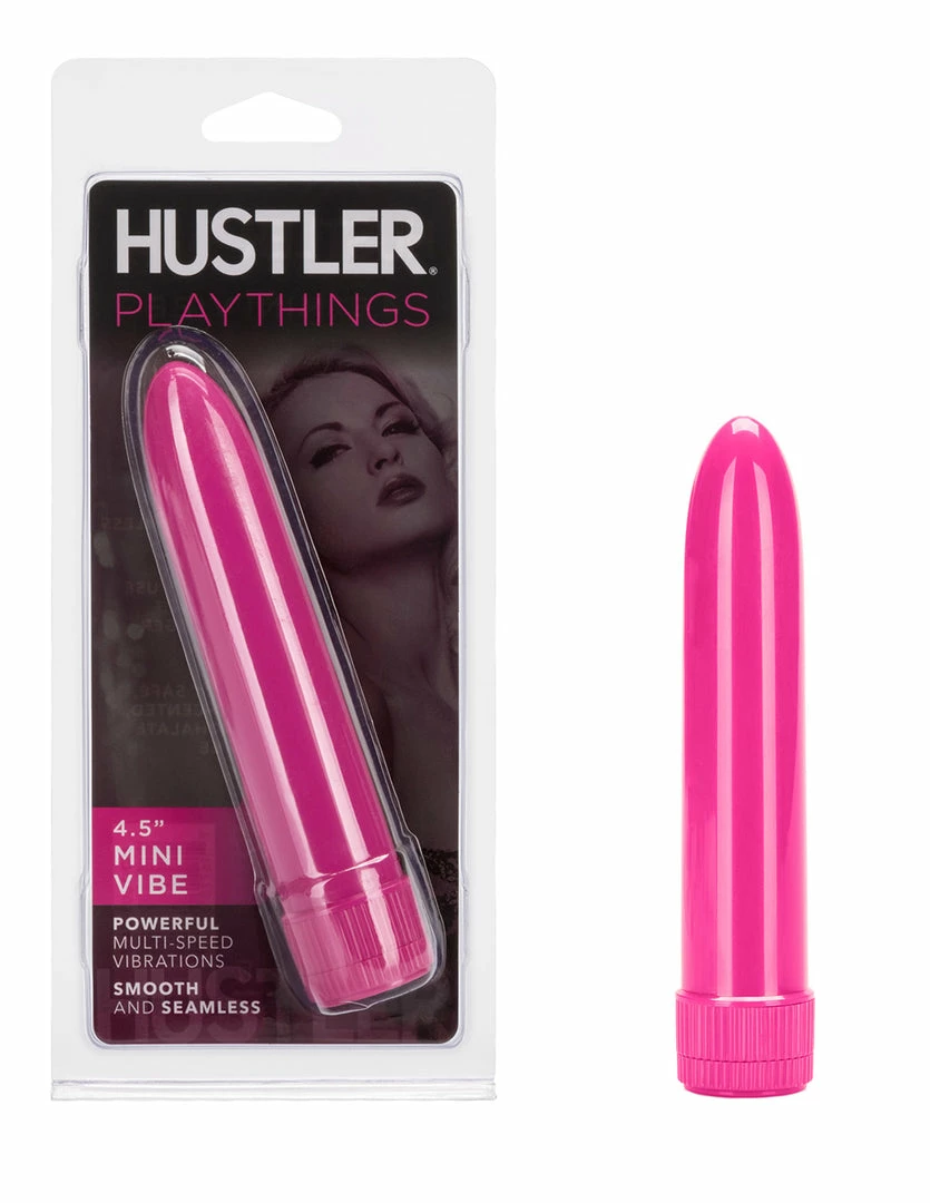 The Mini Vibe by HUSTLER® Playthings is a multi-speed battery powered vibrator. It is made of ABS plastic and requires 1 AA battery. This vibrator is 4.5 inches long and 1 inch wide. Use it internally to stimulate the G-spot and vaginal walls. Use it externally to stimulate the clitoris. Mini Vibe has a dial knob that adjusts the vibration speed. Twist it from low to high to tease yourself to climax. This vibrator can also be used to stimulate the penis from head to scrotum. Turn up the vibration at max speed when you are close to climax. Use lubricant with this vibrator for the best glide.
