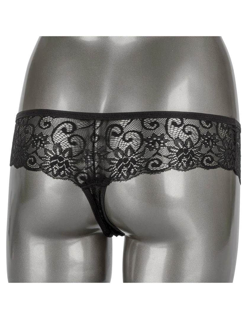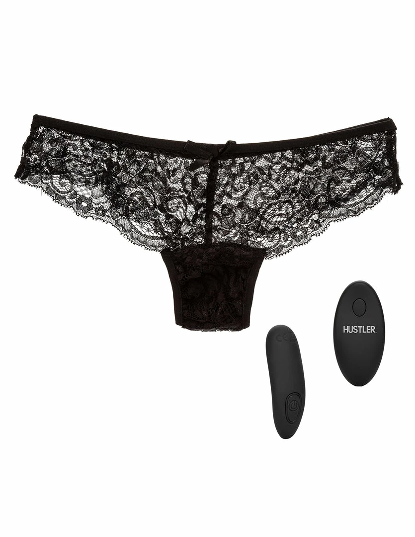 Enjoy vibrating stimulation wherever you go with our HUSTLER® Playthings Remote Control Thong. Our panty vibrator is made of smooth and firm silicone material. Its remote is made of hard ABS plastic. It has deep and buzzy vibrations to get you off, whenever you need it. The panty vibrator is 3.5 inches long and 1.5 inches wide. It fits in any panty line pocket. This vibrator comes with a thong panty to hold your vibrator in place.