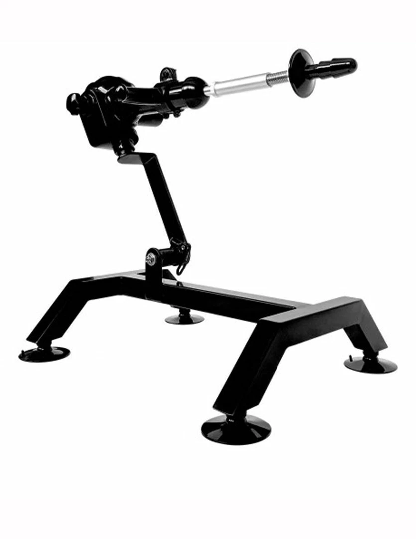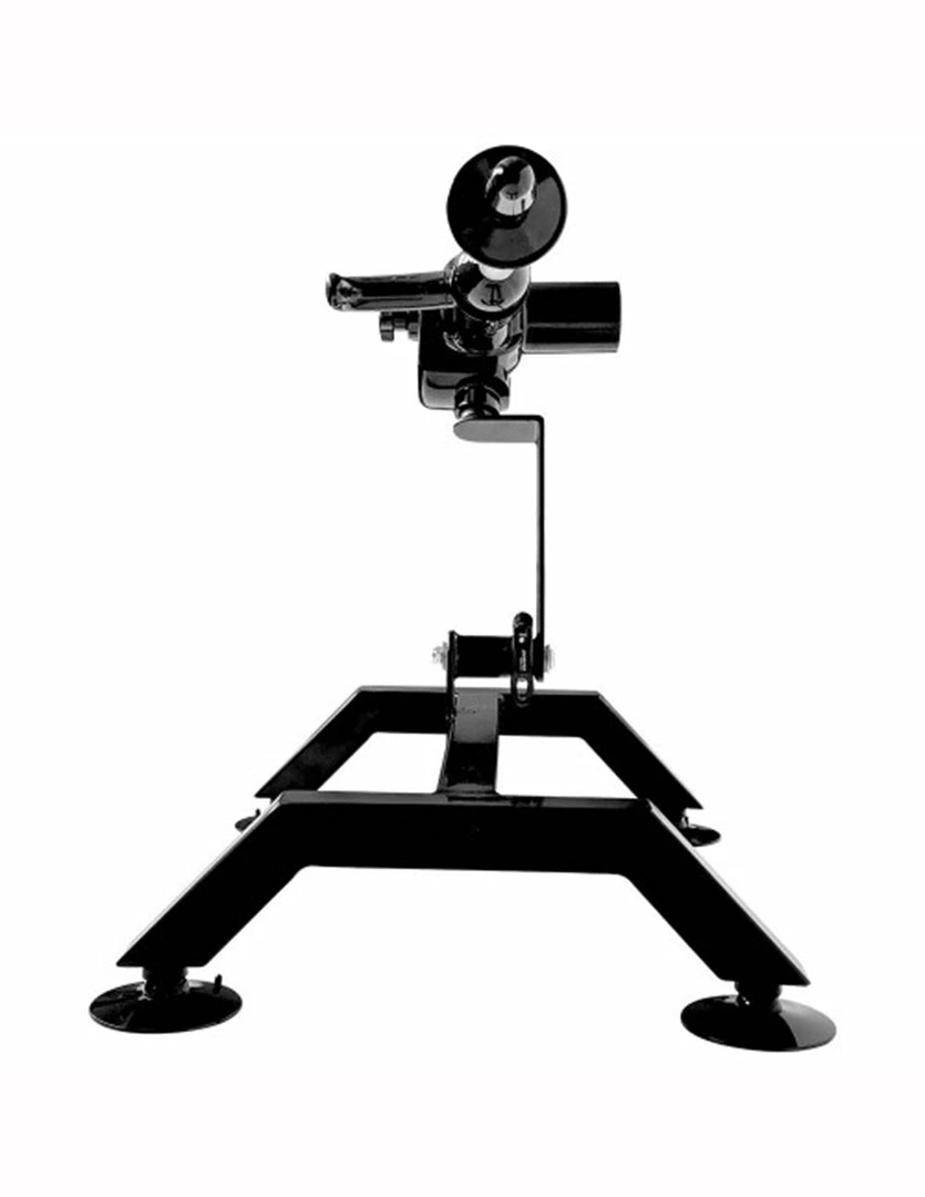 This sex machine has an adjustable base and top for all of your pleasurable positions. Use the clip to change the angle of the base. The rotary knob adjusts the top angle of the machine. It has strong suction cups on the bottom of each foot. It will hold and attach on to any non-porous surface.