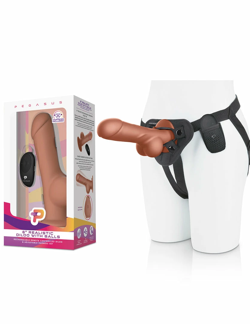 Vibrators Pegasus 8″ Realistic Dildo With Balls Strap-On Set