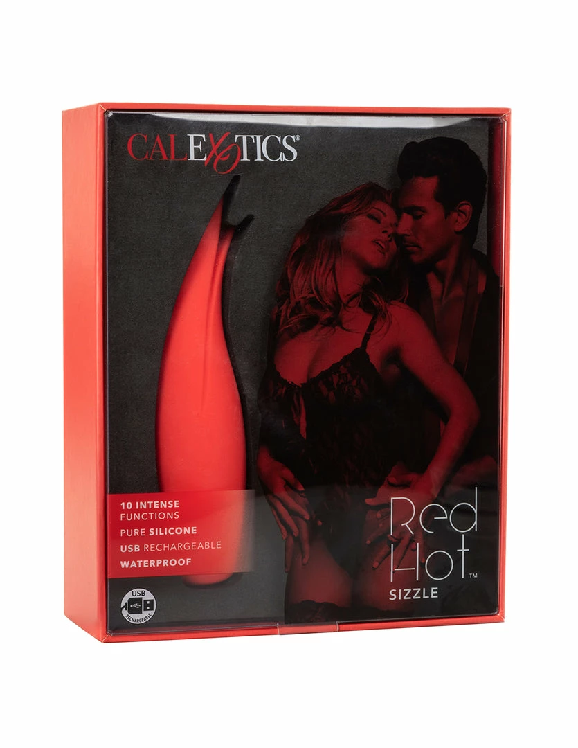The Sizzle by Red Hot is a great fluttering vibrator. It is 5.25 inches long and 1.25 inches wide. Sizzle is made of smooth silicone material. It is USB rechargeable and waterproof. This vibrator has 12 vibrating patterns to play with. Its 2 narrow flaps can be used to stimulate the nipples, labia, or clitoris. Have it lick you up and down or use it as a dual teaser with each flap on either side of a lip or the head of the clitoris.