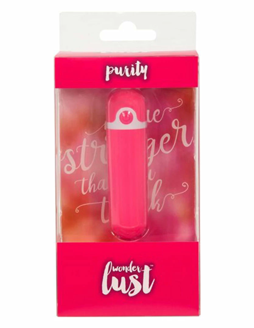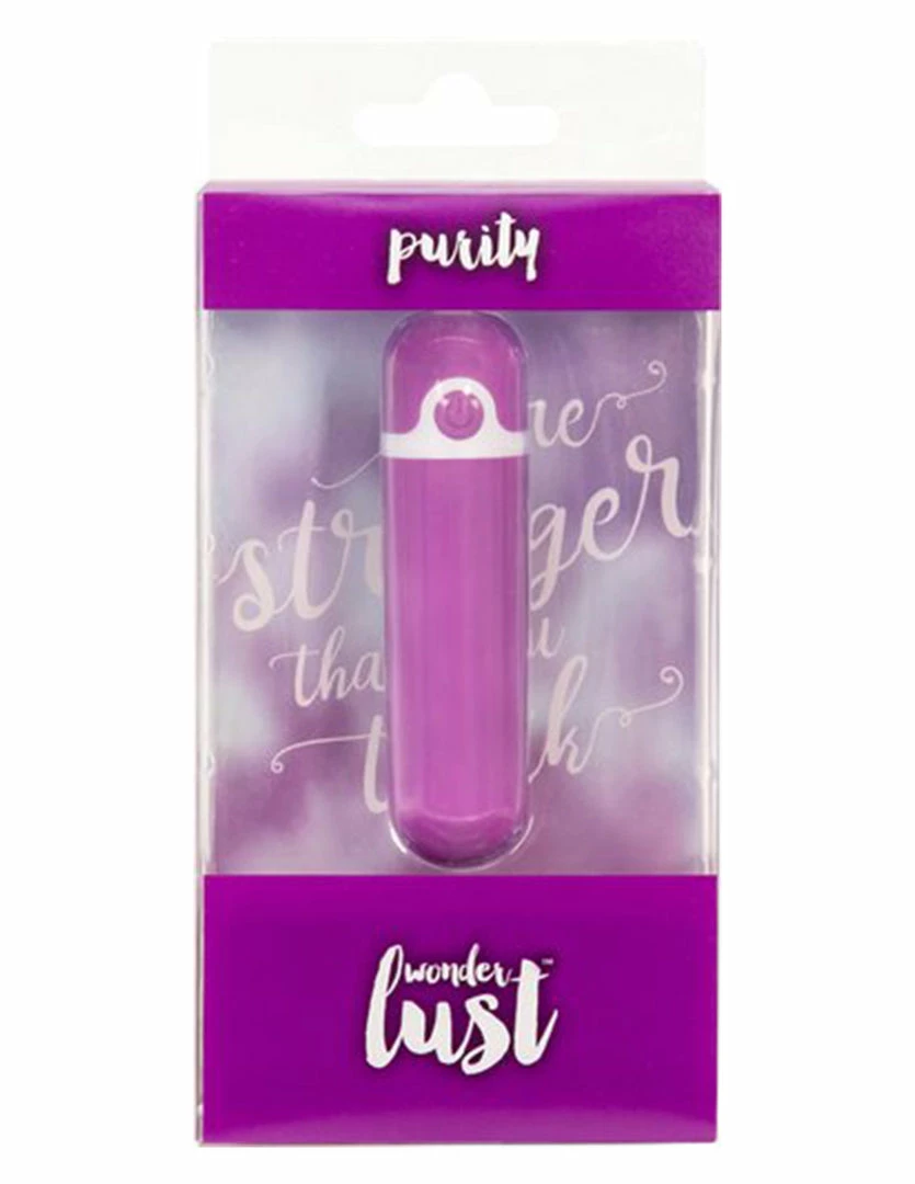 The Purity bullet vibe is pure power! This rechargeable bullet vibrator creates incredibly strong vibrations and is so discreetly compact that you can take it with you whenever you go. With 20 different functions, this bullet vibrator keeps things interesting! Perfectly petite, the Purity bullet vibe delivers pure pleasure for solo play and as a sex toy for couples so that you can always keep things humming!
