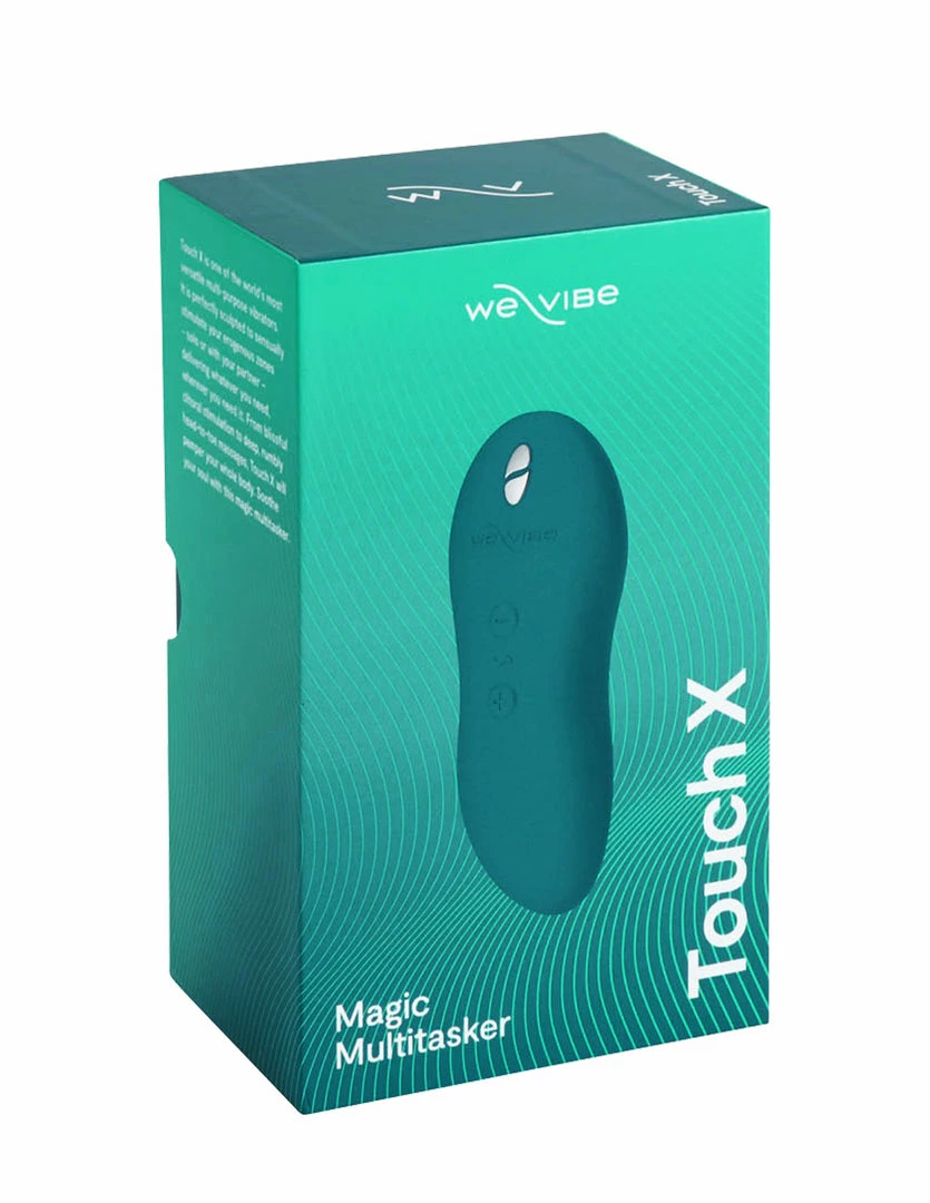 The We-Vibe Touch X is a multi-purpose vibrator. It is made for deep massage and erogenous stimulation. Touch X is 4 inches long, 1.7 inches wide, and 1.4 inches thick. It has 8 deep, rumbly intensities and 7 vibration patterns to play with. It is made of smooth silicone material and is 100% water proof. It can be safely used in the shower or tub. Touch X has 3 control buttons and a travel lock. It takes 1.5 hours to fully charge and gives 2 hours of playtime.
