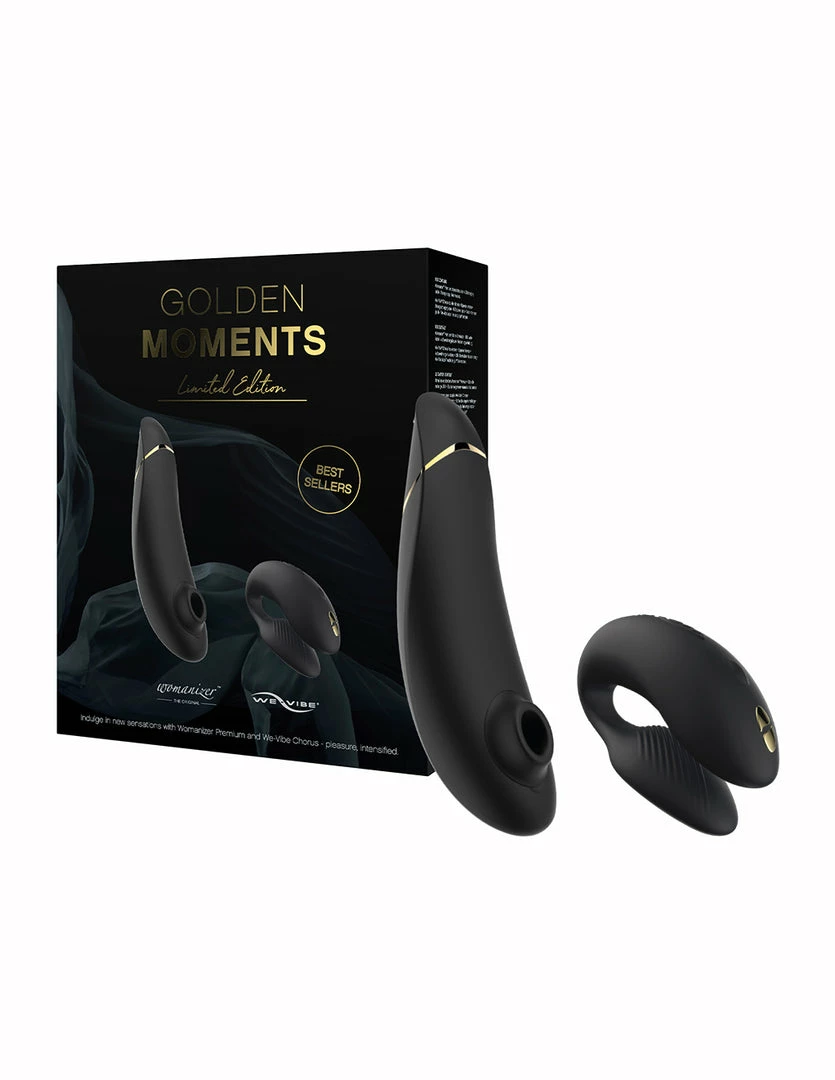 The Golden Moments are a limited edition Set by We-Vibe and Womanizer. It includes 1 We-Vibe Chorus and 1 Womanizer Premium in black. These toys are luxurious. They are perfect as an anytime present for the one you love.