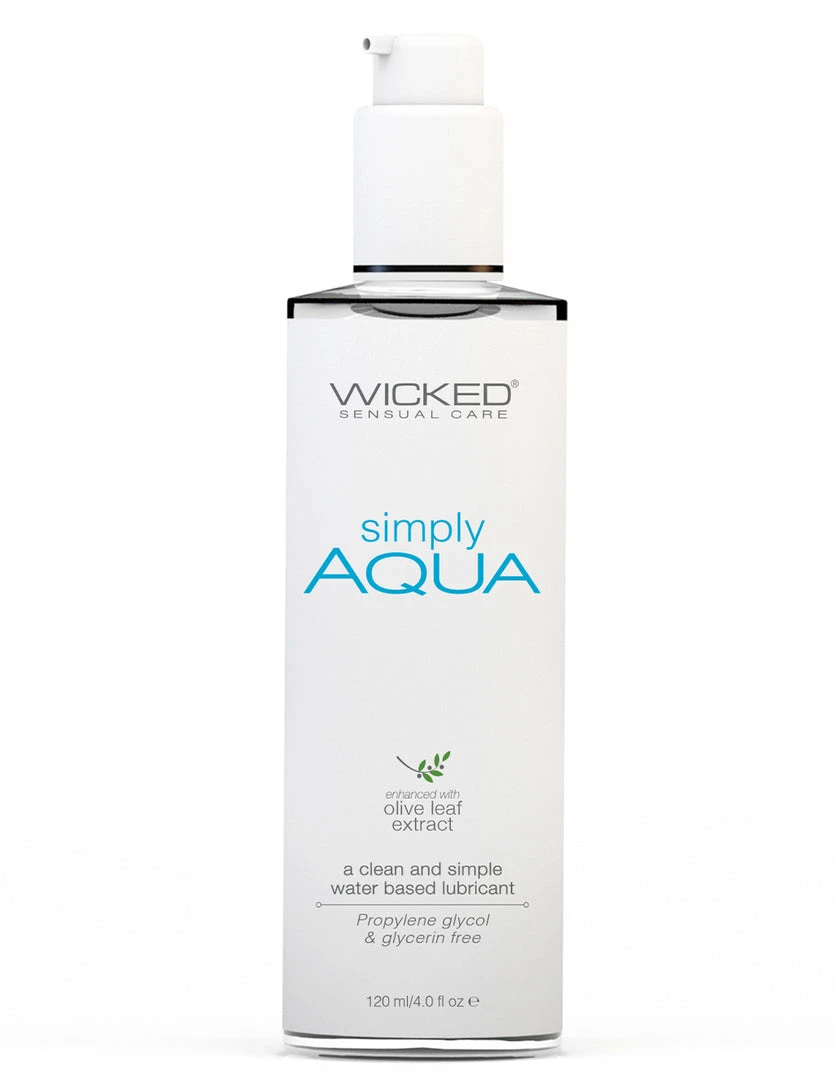 Simply Aqua by Wicked is a clean water based lubricant. It does not dry tacky. It moisturizes as well as lubricates delicate areas. Olive leaf extract is the active ingredient in this lubricant. Olive leaf extract moisturizes and minimizes the growth of bacteria. It is a natural preservative in this lube. This lube is Paraben, Glycerin, and Propylene Glycol free. It is all natural, cruelty free, and vegan.